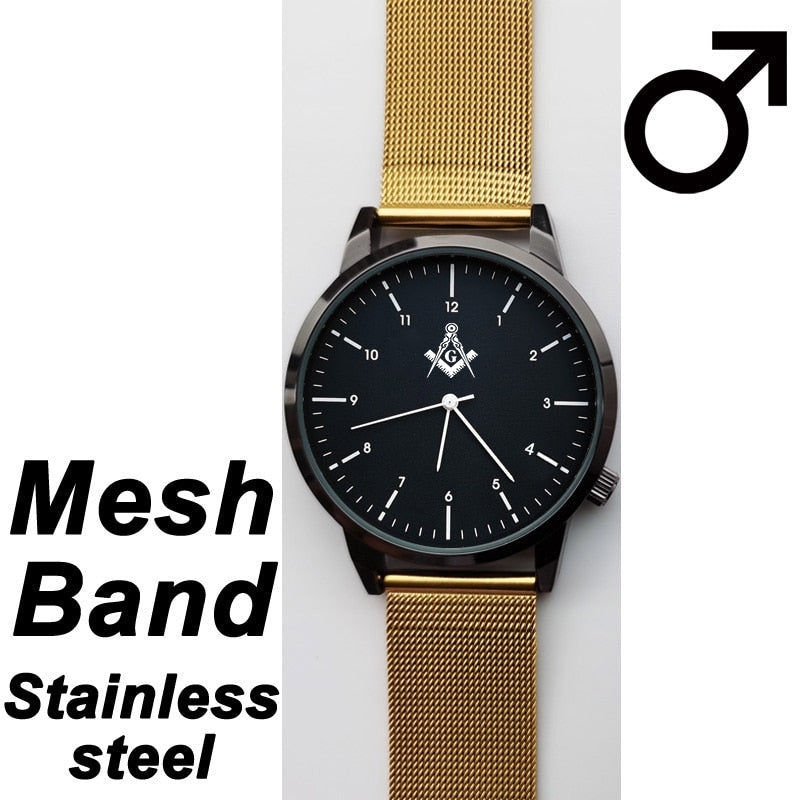 Unlike other watches, this wristwatch carries your favorite Masonic insignia inside. It will give a nice gift to the freemason in your life. Additionally, you could engrave your name and lodge n° or any custom text for FREEThe band used in the wristwatch is made of Genuine/PU Leather or Stainless steel Mesh. The Watch comes with Multiple Colors to choose from!